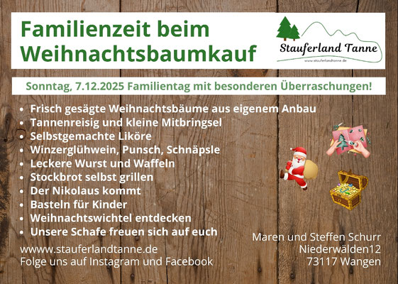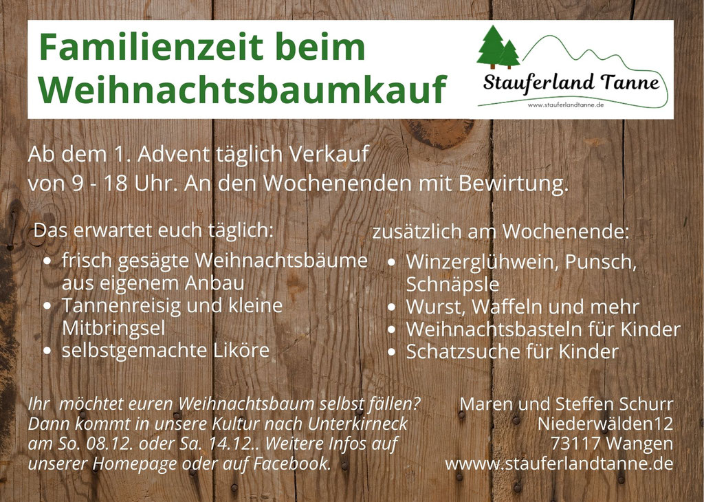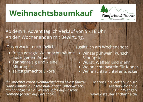 Ab November gibt es Tannenreisig und Weihnachtbäume bei uns in 73117 Wangen (bei Göppingen), Niederwälden 12.